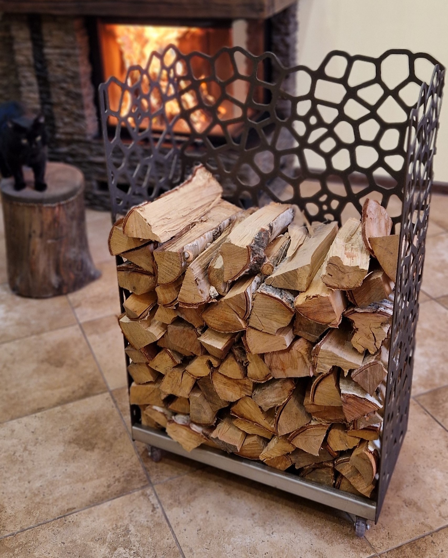 Колесная дровница «Хольцваген» предназначена для аккуратного и компактного хранения довольно большого количества дров в доме. Поворотные колеса позволяют легко и удобно перекатывать тяжелую загруженную дровницу по полу. Ее можно подкатить к месту загрузки дровами, а не носить к ней дрова охапками в руках. Ее можно подвинуть поближе к камину или печи при растопке или откатить в сторонку при уборке. Она не только удобна, но и красива. Ее рисунок легок и прозрачен и напоминает сложенную поленницу.